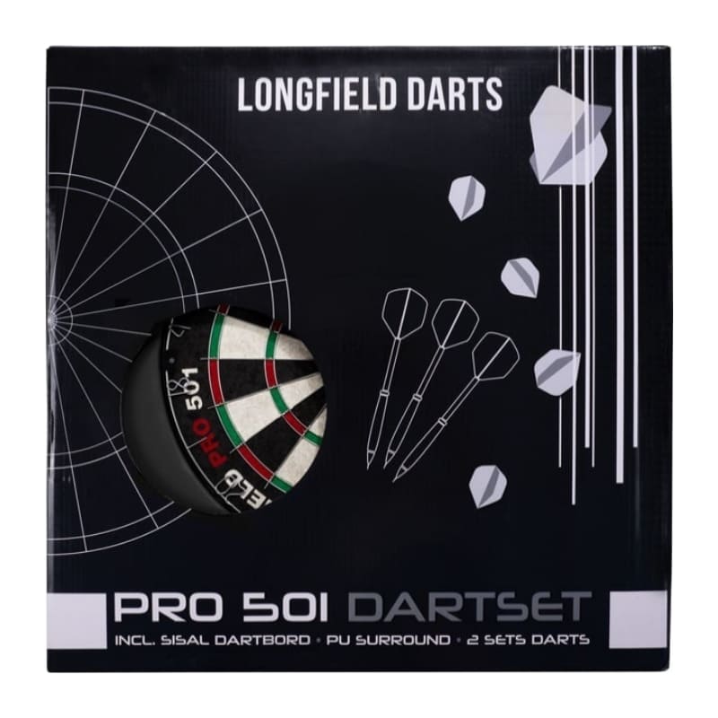 Pro 501 dartbord met surround en 2 sets pijlen. Superleuk starterspakket voor de beginnende of recreatieve dartspeler. Uitgevoerd met een officieel competitie dartbord gemaakt van sisal, een professionele zwarte surround gemaakt van hoogwaardig PU-materiaal en 2 sets dartpijlen met een stoere zwarte coating over de barrels. Oftewel, alles wat je nodig hebt om direct te kunnen darten. Bij het dartbord wordt ook een ophangset geleverd met muurbeugel en schroefjes. De sets pijlen zijn gemaakt in 22 gram. Een van de meest gebruikte gewichten in darts. Bovendien worden ze geleverdmet 3 shafts en flights in verschillende kleuren, zodat je de setjes makkelijk uit elkaar kan houden. Het unieke aan de surround ring is dat hij in principe zijn leven lang mee kan gaan, mits je er normaal mee omgaat natuurlijk. En hij past om ieder merk sisal dartbord. Dus als je later een ander dartbord aan wilt schaffen, past de surround hier gewoon perfect omheen. Deze Pro 501 dartset zit compact verpakt in een luxe doos. Erg mooi en geschikt dus ook om kado te doen. Voor de prijs hoef je het in ieder geval niet te laten!